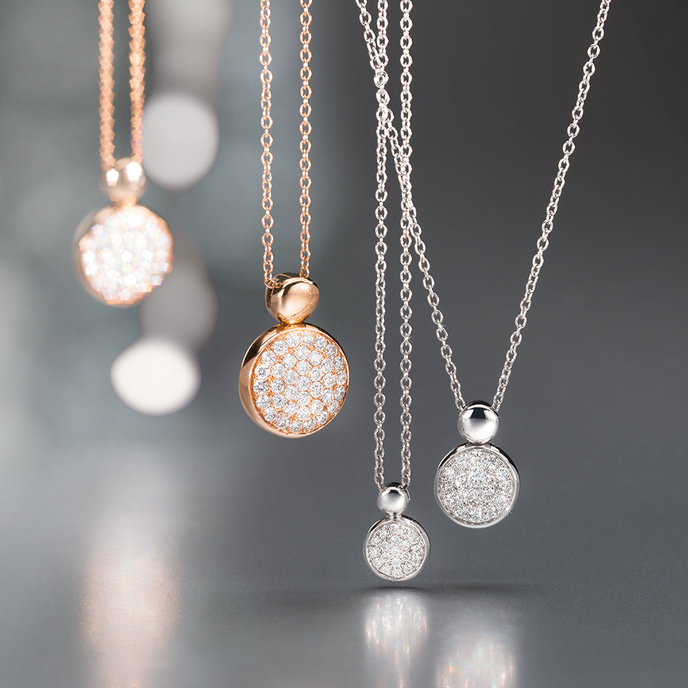 Die sind aber süß! Die Ringe Ohrhänger, Colliers und Armbänder der Linie Dolcini verführen mit Mini-„Plätzchen“ aus Gold, besetzt mit funkelndem Diamant-Pavé. Die Kleine Köstlichkeiten - das bedeutet Dolcini aus dem Italienischen übersetzt - gibt es in verschiedenen Größen und und Formen. Highlight der Serie: Ein Collier mit vielen funkelnden Dolcinis.