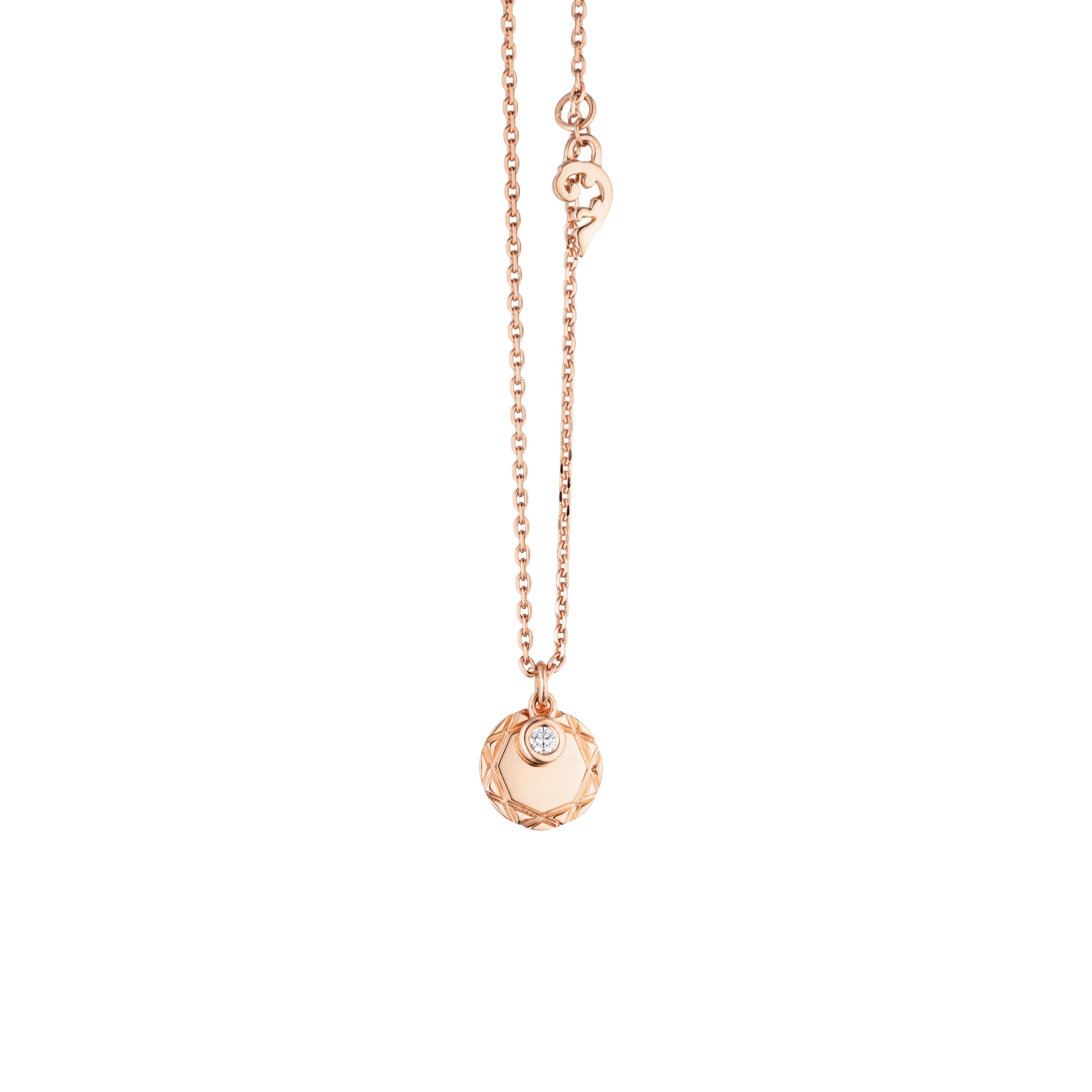 - with a customizable round tag and a moving diamond in a bezel setting